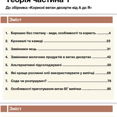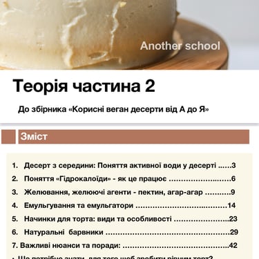 ✔️2 частини розгорнутої теорії по веган випічці та тортам (PDF), де зібрані знання про замінники яєць, рослинні вершки, стабілізатори та секрети структури тіста.