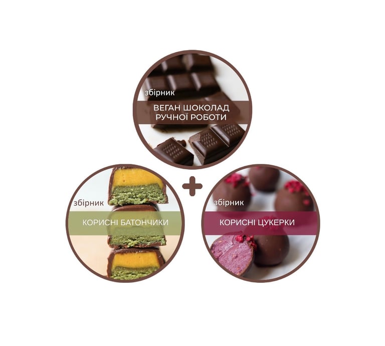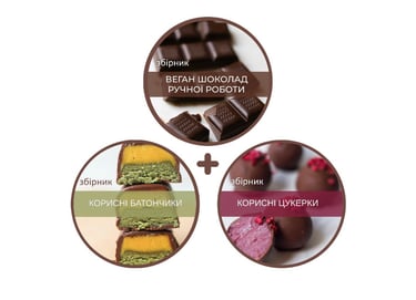 Збірники "Веган шоколад ручної роботи" + "Корисні батончики" + "Корисні цукерки"