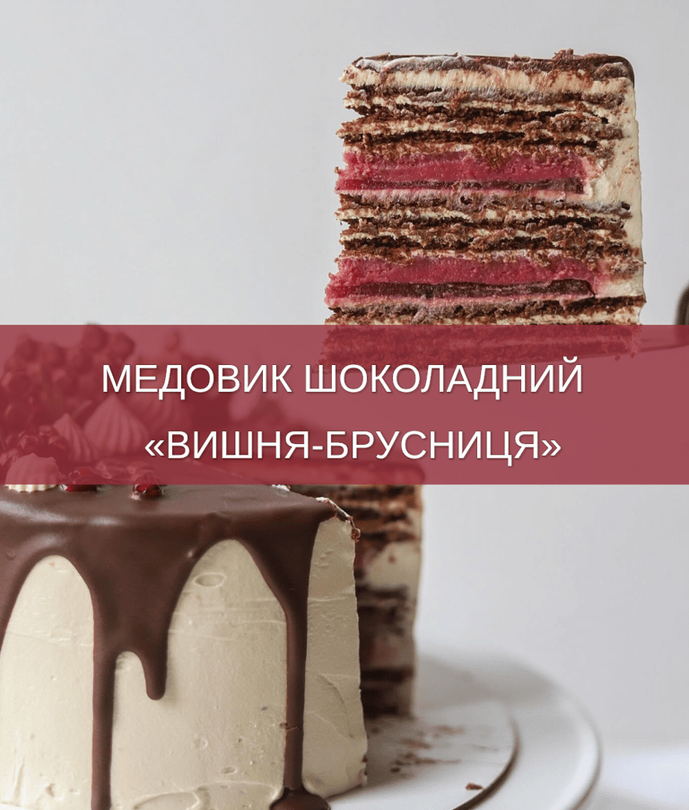 Рецепт торту "Медовик шоколадний вишня-брусниця"