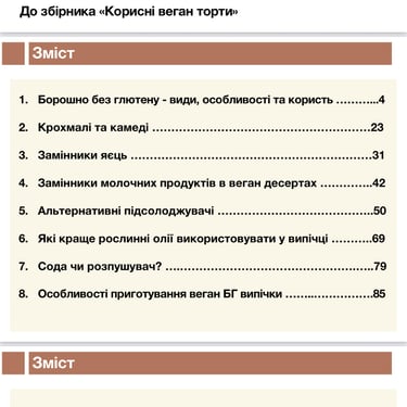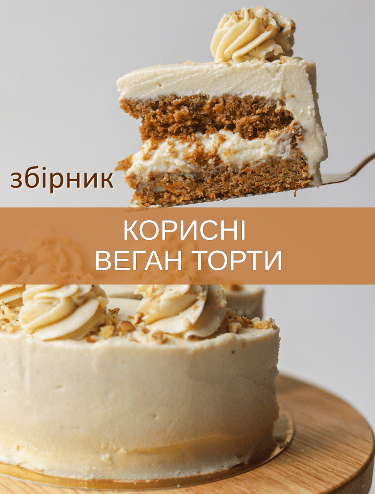 Зі збірником «Корисні веган торти» ти з легкістю навчишся готувати 8 різних унікальних рецептів тортів без білого цукру, глютену та тваринних продуктів.